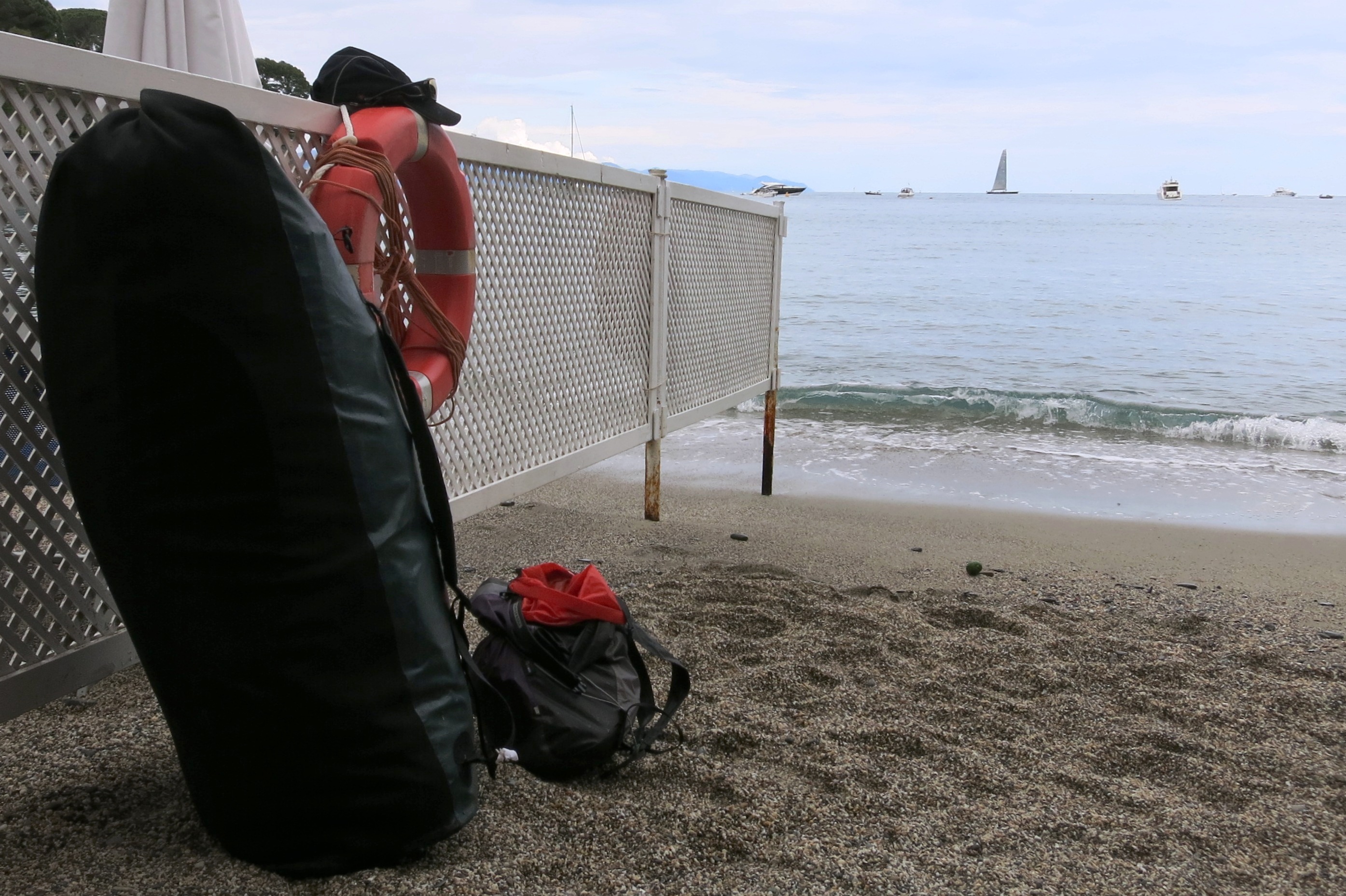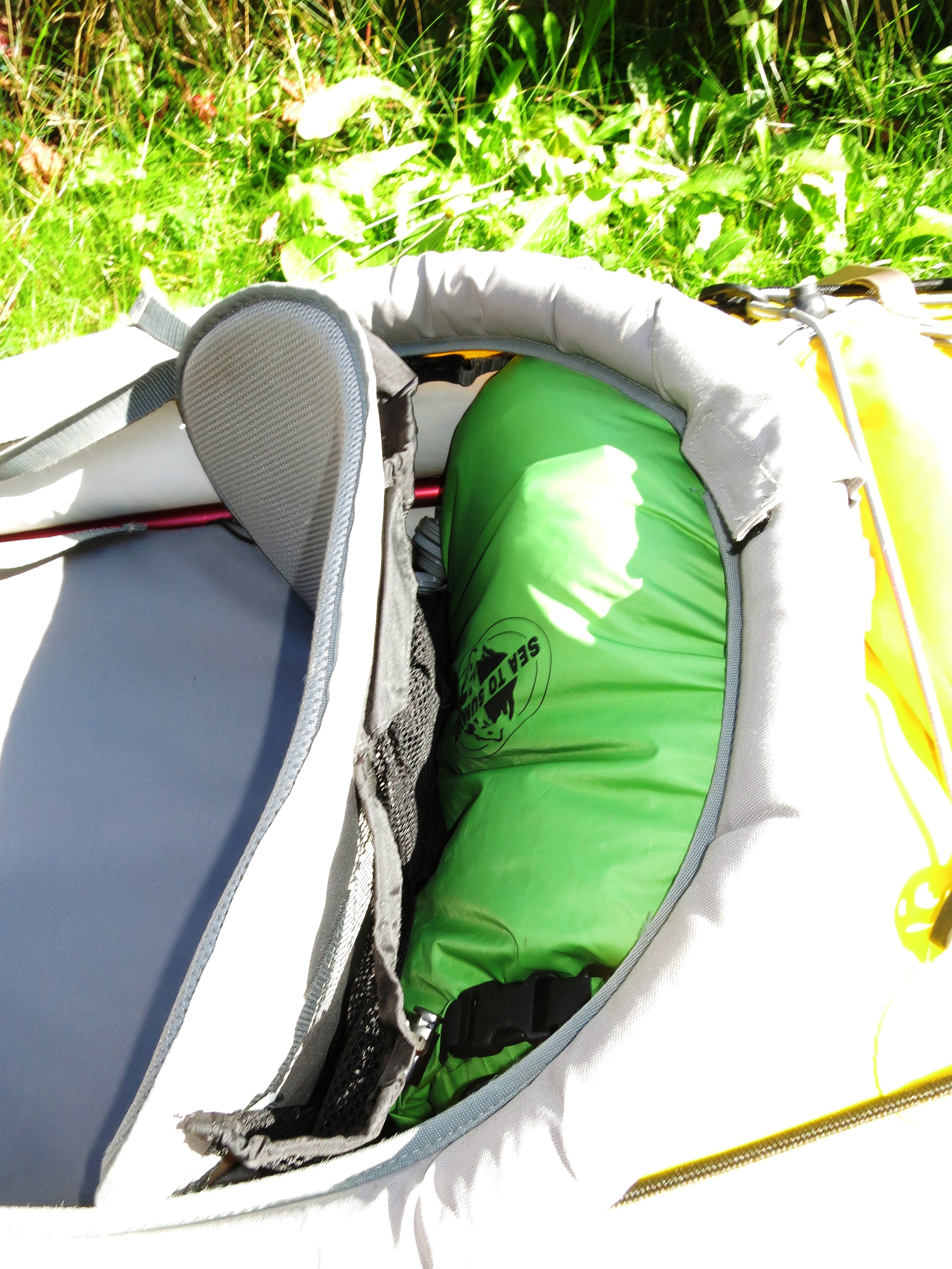 20 Liters dry sack behind the seat with tent, mattresses and sleeping bag.